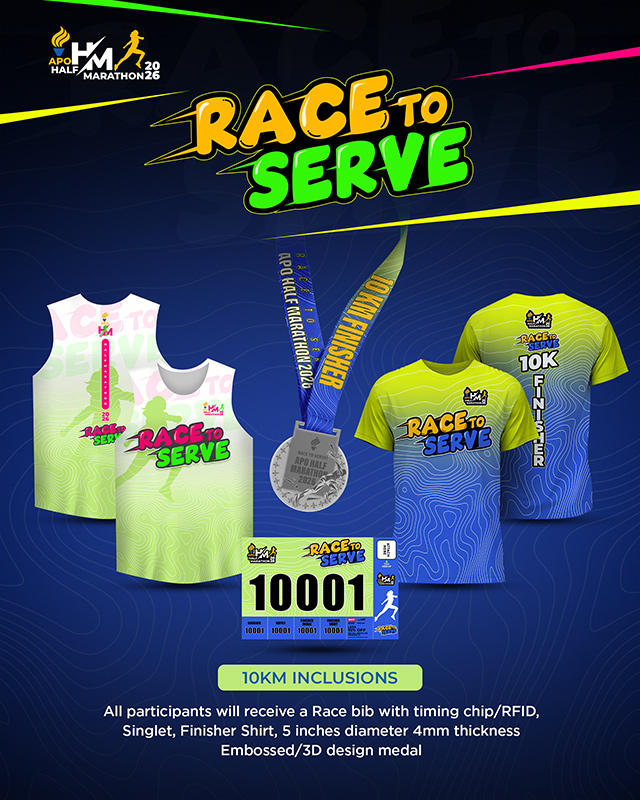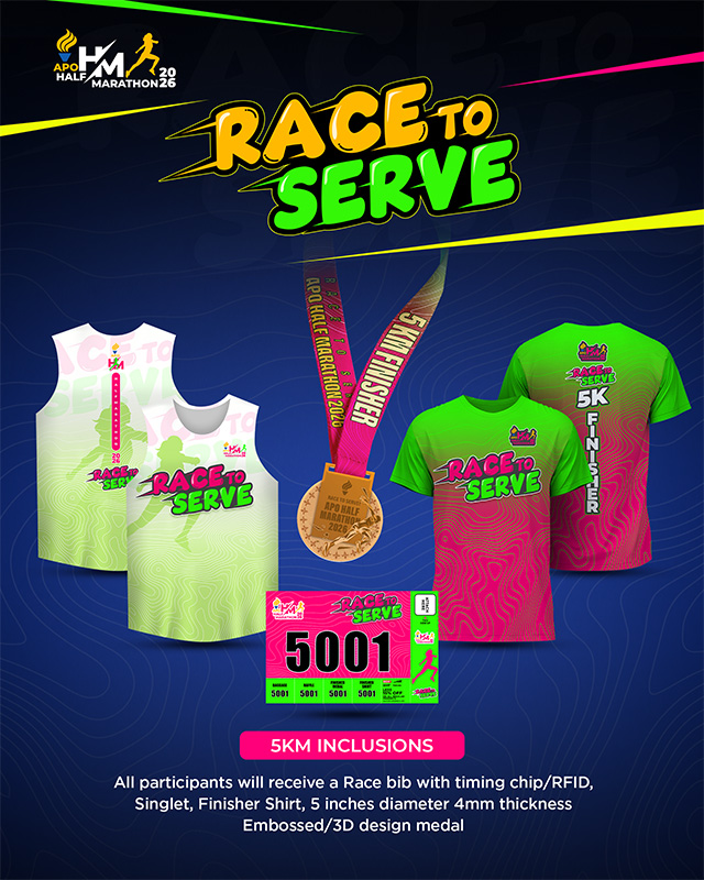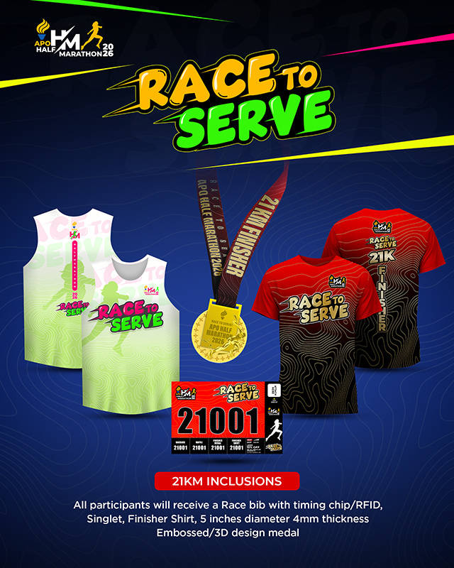 Register hereRace to Serve: APO Half Marathon 2026 is an event by APO Runners and organized by Green Media Events Company as their main and major partner. The objective is to promote Leadership, Friendship and Service thru running. This particular event aims to generate profit to help fund the different service projects of Alpha Phi Omega. Specifically, part of the proceeds will be donated to God Sanctuary for Stray Animals, AHA Learning Center and Cancer Patients to help the Organization causes.